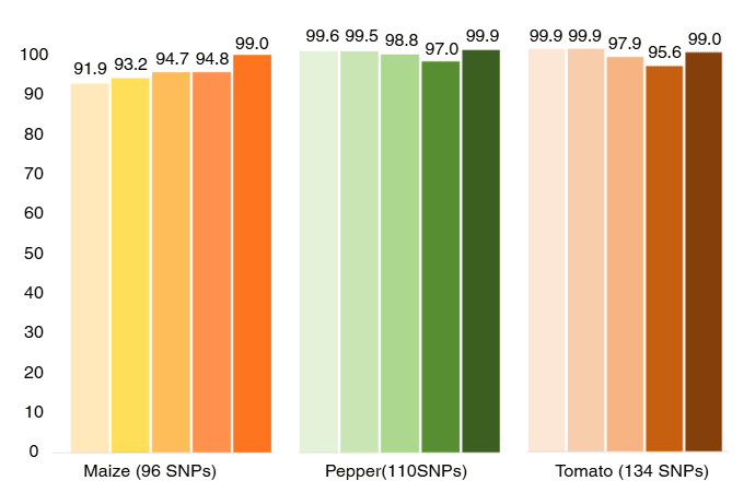 In the evaluation of three GenoPlex-One panels—Maize, Pepper, and Tomato—demonstrated consistently high performance, with call rates and uniformity exceeding 94%. This performance was reliably maintained across replicates. All panels achieved over 90% alignment to the reference genome with comparable call rates.