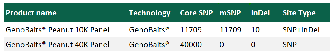 High-throughput genotyping technology is essential for identifying and developing superior peanut varieties. Our Genotyping by Targeted Sequencing (GBTS) technology combines the advantages of array-based methods and high-throughput sequencing, offering unique benefits in customization, throughput, and cost-effectiveness. Utilizing this advanced GBTS technology, we have developed a comprehensive range of ready-to-use peanut panels with varying marker densities. These panels are designed to accommodate a diverse array of sample types, including plant tissues and seeds.