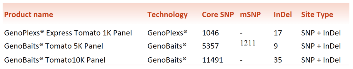 High-throughput genotyping technology is essential for identifying and developing superior tomato varieties. Our Genotyping by Targeted Sequencing (GBTS) technology combines the advantages of array-based methods and high-throughput sequencing, offering unique benefits in customization, throughput, and cost-effectiveness. Utilizing this advanced GBTS technology, we have developed a comprehensive range of ready-to-use tomato panels with varying marker densities. These panels are designed to accommodate a diverse array of sample types, including plant tissues and seeds.